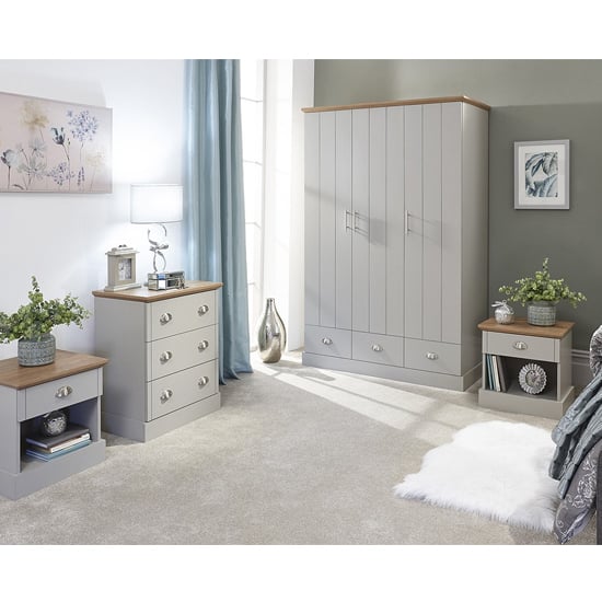 £339.95 valencia trio bedroom furniture set in grey with oak top.